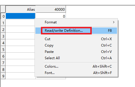 点击鼠标右键,选择读写定义:
