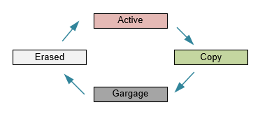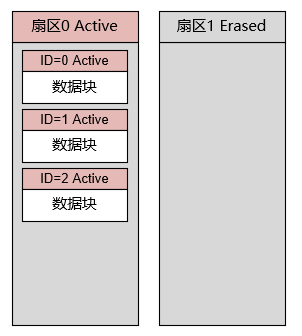 等到扇区1空间耗尽,则可以整个擦除扇区0,再将扇区1中的有效数据拷贝到扇区0中去,然后将扇区0标记为Active,将扇区1标记为Garbage。 结合上述原理,我们知道,不论是扇区还是数据块,都需要一个头部来保存若干状态:
