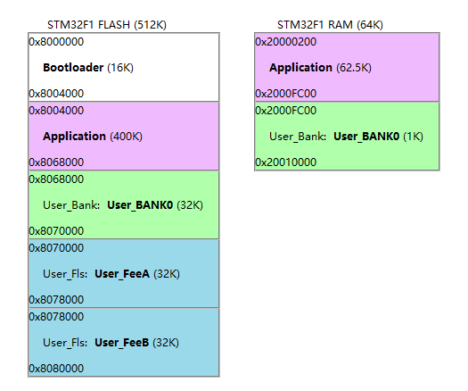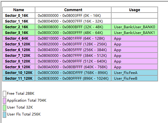 如图所示,在User_Fls下面添加两个区间:User_FeeA、User_FeeB。这两个区间分别使用单片机的最后两个扇区,都是128K大小。