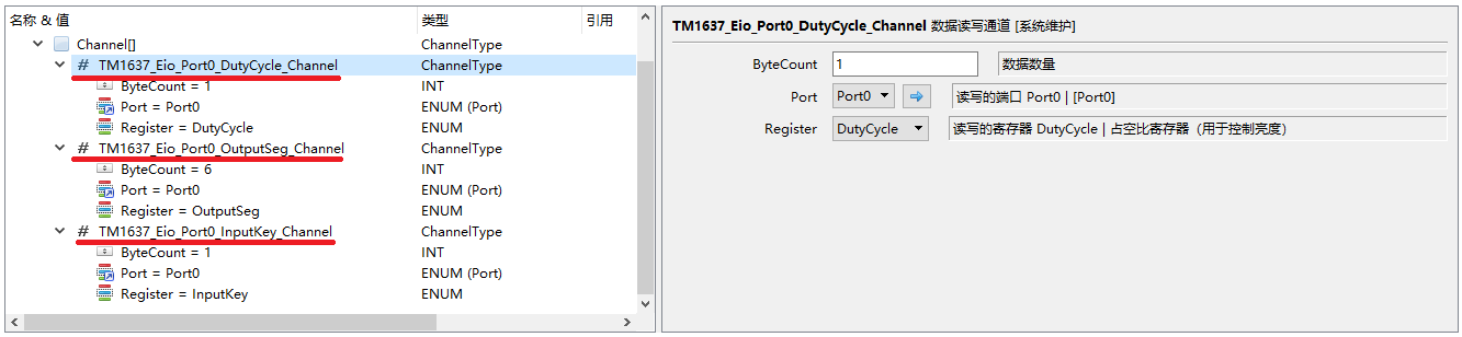 编译项目,确认Channel下面系统自动添加了3个读写通道,分别用于设置亮度、设置LED数据、读取按键值。