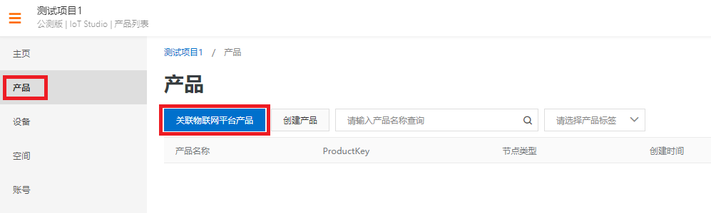 配置好串口后,下一步我们添加EC600网卡。选择“TCP/IP通讯”选项卡,点击“添加”按钮下面的“添加EC600”命令: 选择网卡EC600A,在硬件选项卡中,选择串口为USART6,PEN管脚为PB2,PWK管脚为PA15: 选择网卡EC600A,在MQTT选项卡中,勾选“此硬件端口可以支持MQTT协议”: 点击确定即可生成蓝图。蓝图上传到服务器;完成开发板的烧录;PLC类型部署到本地后,便完成了硬件部署。 阿里云设备创建登录阿里云通过网址https://www.aliyun.com/可以登录到阿里云。在已经注册了阿里云账号的情况下,进入控制台: 在控制台产品与服务中,选择“物联网IoT”分类下的“物联网平台”: 作为测试,可以使用公共实例,如果没有开通,需要先开通公共实例: 点击公共实例,可以查看此实例下的产品,这里我们添加一个新的产品: