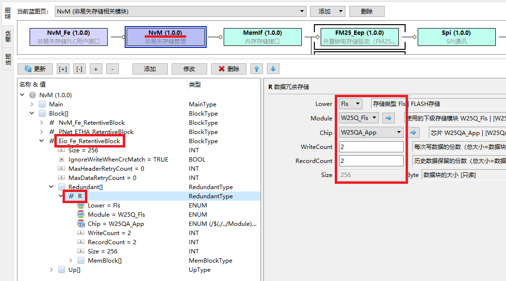 为了保存标定参数,Eio_Fe会在NvM中生成一个节点Eio_Fe_RetaintiveBlock。我们需要给他添加一个数据保存点:
