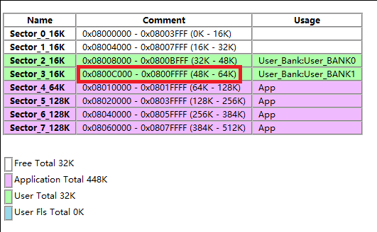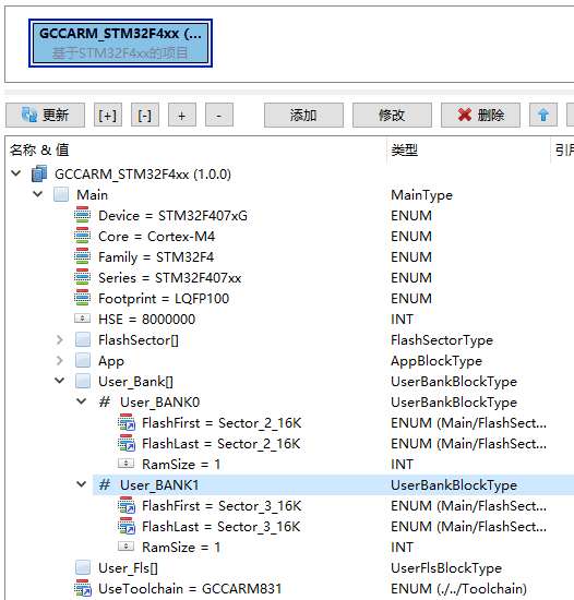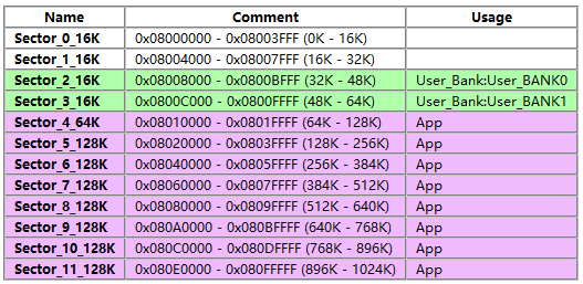 在这个STM32F407VG单片机中,最开始的两个Sector预留给了Bootloader。紧随其后的两个Sector分别是User_BANK0和User_BANK1,用来存放Application Editor的梯形图。最后面的Sector则分配给PLC系统固件使用。我们知道,Application Editor自带的EC30/EC40都是编译型的PLC。Application Editor根据用户的梯形图逻辑,生成C代码;然后C代码编译成CPU的机器码,下载到User_BANK0或者User_BANK1。每一个User_BANK,都是一套独立的程序。系统支持多个BANK的梯形图一起运行,也是为了方便各个阶段的开发方单独下载自己的梯形图程序。例如控制器生产方可以将硬件相关的模拟量标定程序、滤波程序下载到BANK0,设备制造方则用BANK1来写控制工艺。