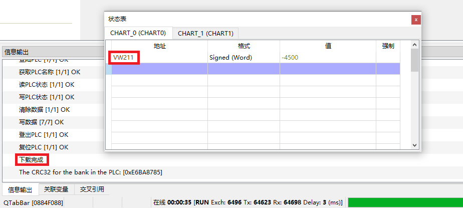 将项目重新上传到KQD服务器,用这个新配置烧录固件到开发板,便完成了PLC系统关于定制指令配置。