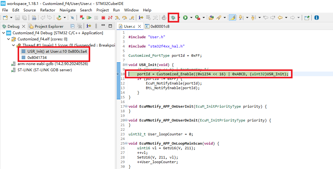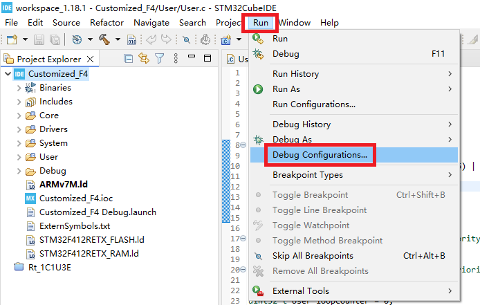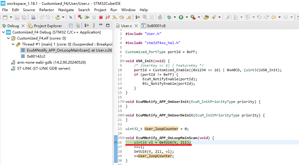 在STM32CubeIDE项目中,打开“User/User.c”,对文件做如下修改: