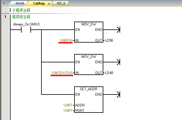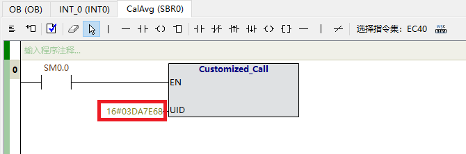 编写如下梯形图,首先让LD56等于16#0F40,这个值是固定的;然后让LD48等于UID;最后执行SET_ADDR。这里保持ADDR和PORT都是16#FF,这样SET_ADDR指令根据LD56的值知道是需要进行Customized_Call的内部调用。然后根据LD48的值,调用定制开发项目匹配的指令实现: