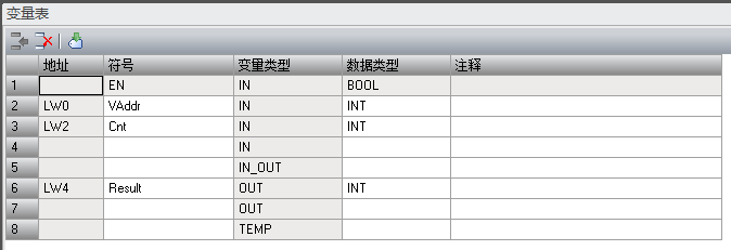 | 12 | Fcc_TableIndex_INT | 梯形图中断函数表的地址 |